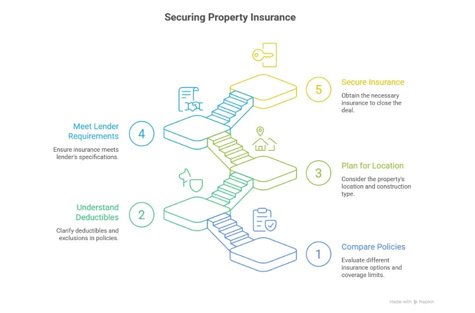 Insurance is not a last-minute checkbox. Start early, because coverage options, pricing, and requirements can shape the deal. Your lender may have requirements, too.
