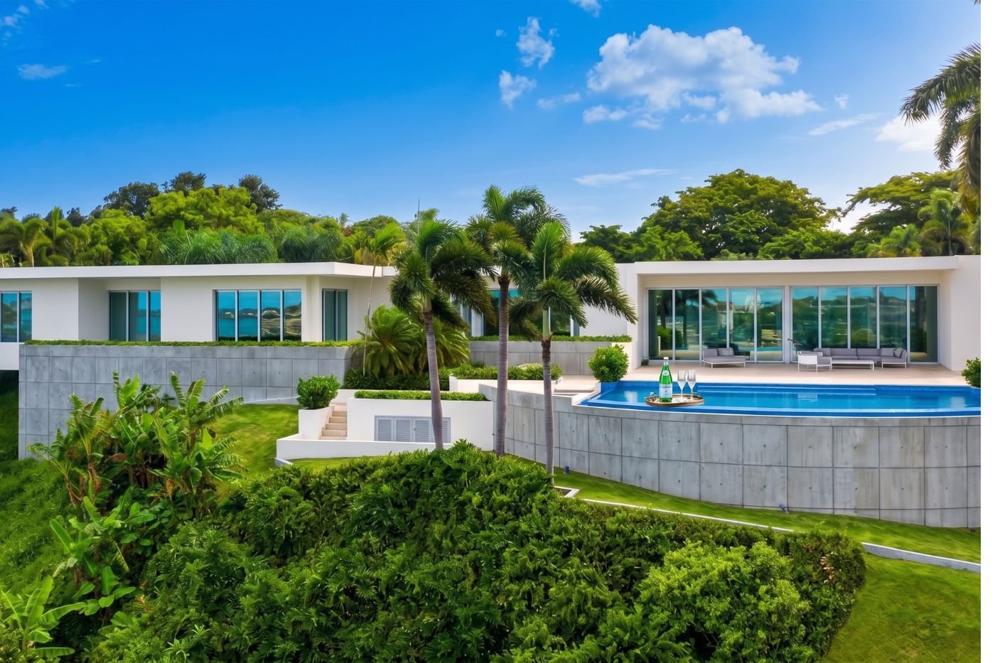 The Hilltop Residence is a custom tropical-modern estate in Guaynabo offering 11,602 square feet of indoor-outdoor living, panoramic city views, an infinity pool, and resilient luxury on 1.22 acres.