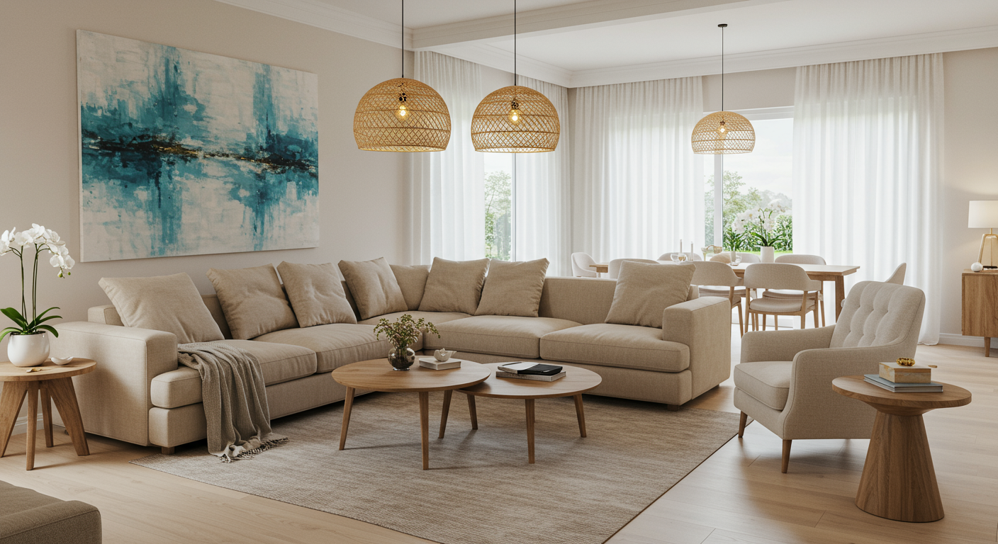 - Contemporary interior design with open-concept living spaces