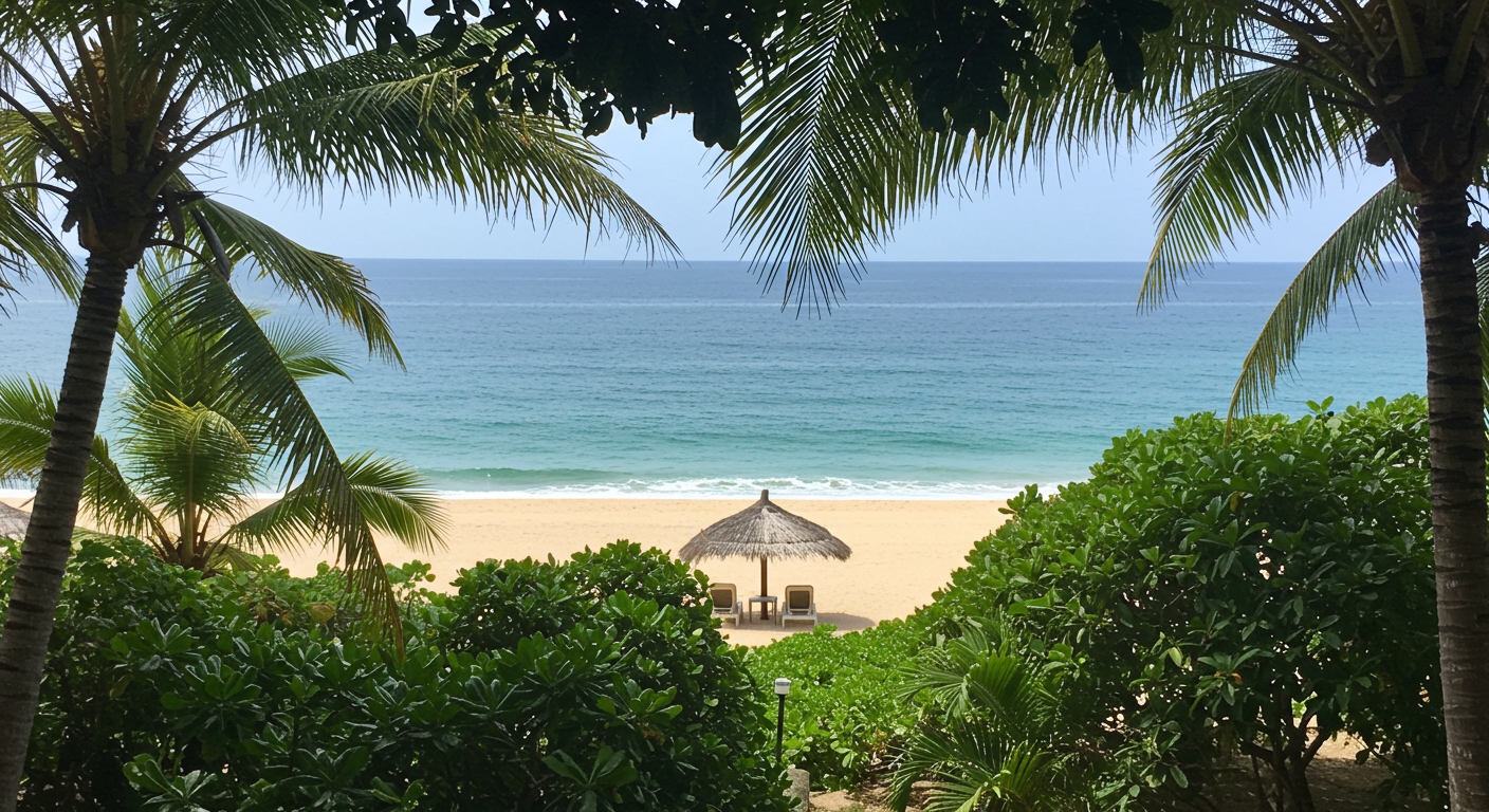 - Lush palm trees and tropical vegetation create a serene and scenic setting, perfect for unwinding by the sea.
